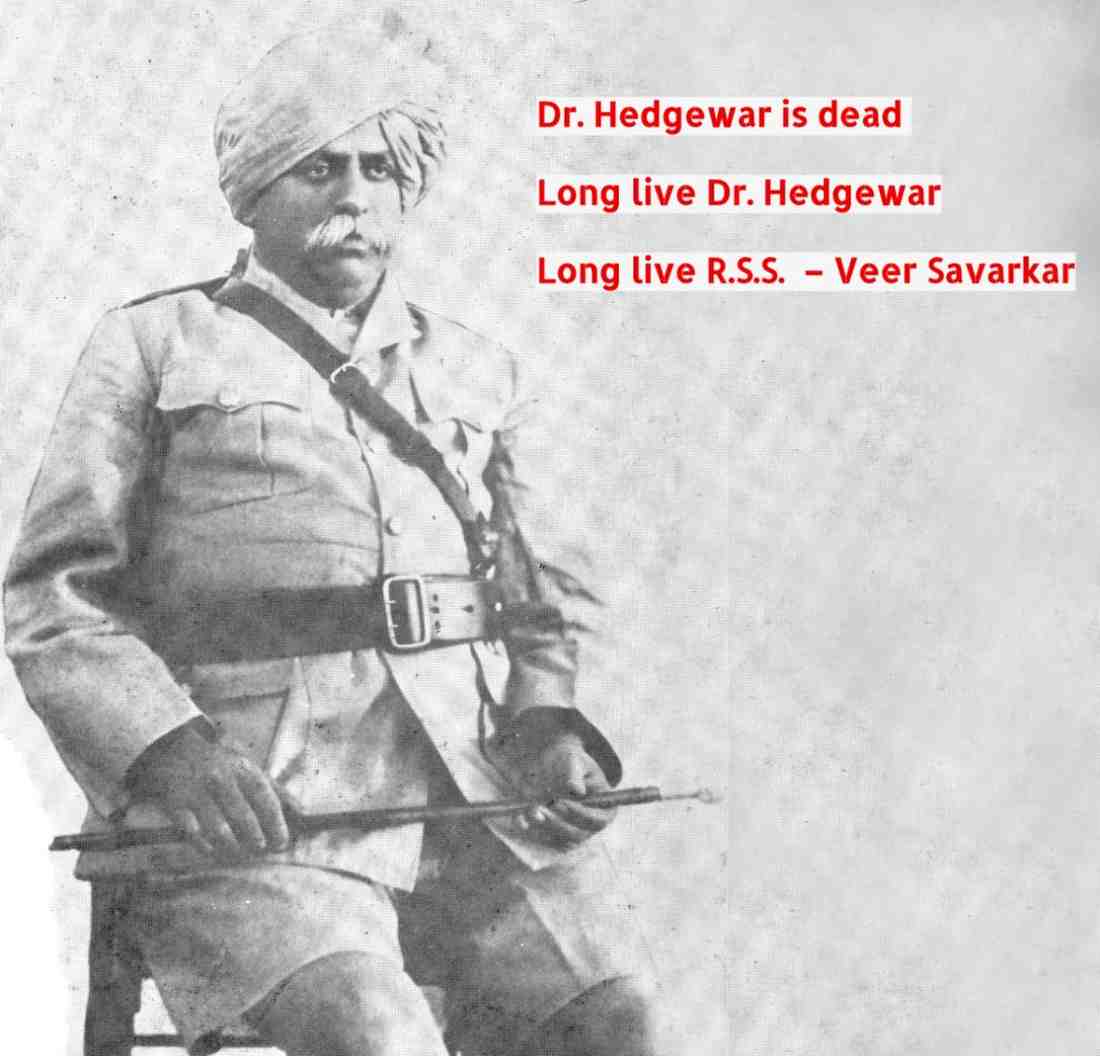 It is indeed a great blow to the fate of the entire Hindu nation that the man who understood the real meaning of Sangathan and achieved the R.S.S. should pass away so early leaving his work unfinished…….“ Nearly a decade before the Hindu Mahasabha adopted the ideal of Hindu Rashtra, indifferently translated as Hindu Nation, the R.S.S. had adopted it. it was Dr. Hedgewar who awakened the Hindus to appreciate the common bond of Hindusthan and Hindutwa; it was he who made it a living tie to bind the young Hindu generation…..” Veer Savarkar, after the first shock of grief was over, exclaimed, “Dr. Hedgewar is dead – Long Live Dr. Hedgewar – Long Live R.S.S.”