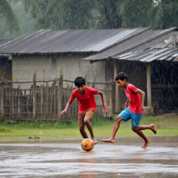 মাঠ ডুবে আছে বলে কোড়কদীতে ফুটবল খেলা বন্ধ ঢালতে পারে না। লাহিড়ীদের মেজ তরফের মণ্ডপ ও কাচারিদালানের মাঝে মস্ত বড় উঠোনটাই মাঠ। খেলোয়াড় সংখ্যা চার জন প্রতি দলে। মোজার মধ্যে পুরোনো ছেঁড়া কাপড়ের টুকরো গুঁজে গোপলাকৃতি করে হতো বল। তার আবার টুর্নামেন্ট। দর্শকও হতো। বিজয়ী দল পেত শিল্ড। শিবদাস-বিজয়দাস ভাদুড়ীর গ্রামের সম্মান রাখতে হবে তো।